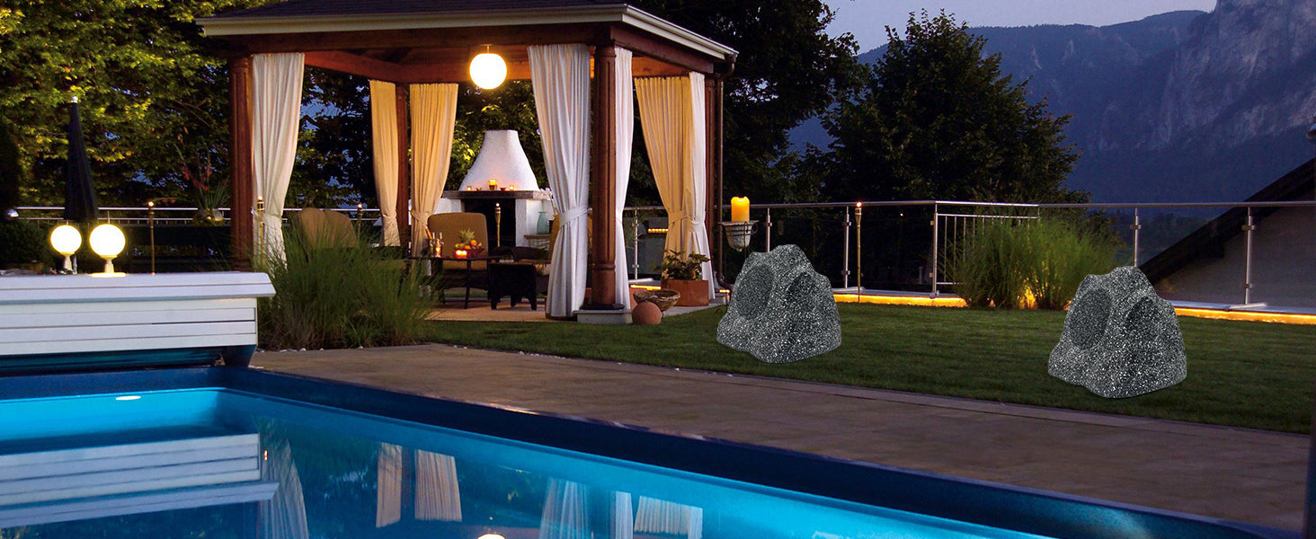 Enhance your outdoor audio experience with this pair of 6.5-inch rock-style Bluetooth speakers. Built to withstand all weather conditions and deliver powerful, high-fidelity sound, they’re perfect for garden gatherings, patio hangouts, poolside relaxation, deck parties, BBQs, and porch zones.