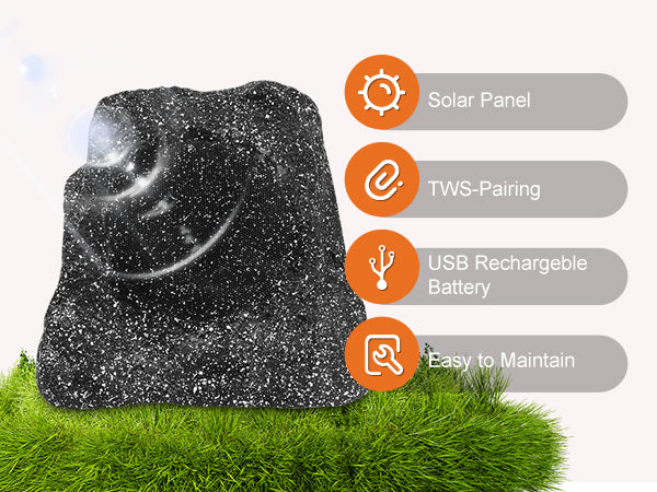 Upgrade your landscape audio with the STUODIOFINIX 6.5-Inch Outdoor Rock Speaker. Designed to look like natural stone, this wireless Bluetooth speaker is solar-powered and waterproof — ideal for seamless integration in gardens, patios, decks, and poolside spaces.